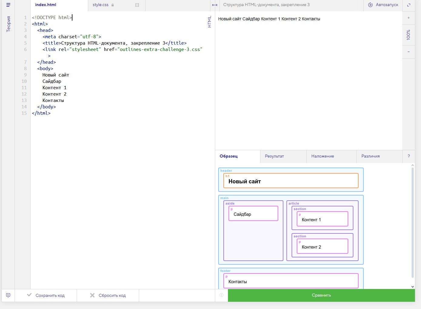 Структура HTML-документа, закрепление 3